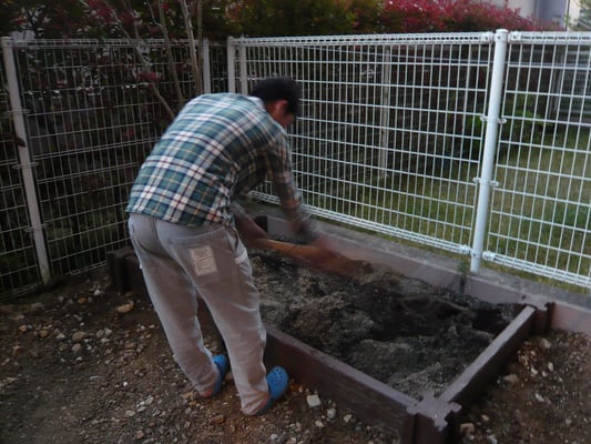 それだけでは足りないのと、畑の土としては使えないので、山砂と培養土を大量に購入し
