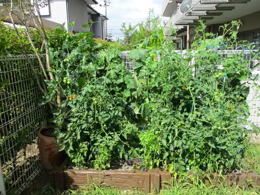 今まで収穫したキュウリは30本を超え、トマトも20個くらいはできたと思います。